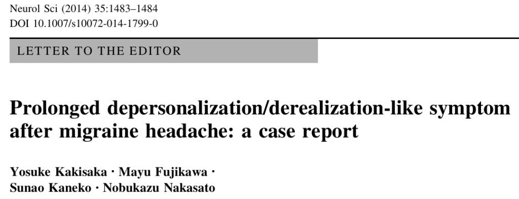 El presente caso sugiere que los síntomas similares a la DPDR pueden presentarse como un posdromo de la migraña (fase final de un ataque de migraña que ocurre tras la disminución del dolor de cabeza), ya que estos síntomas aparecieron después de la cefalea migrañosa