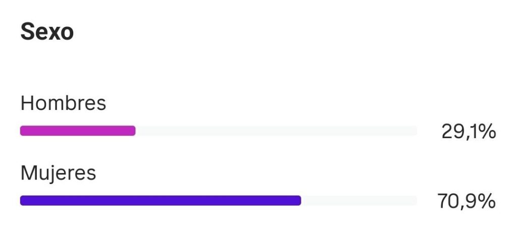 Este es el balance de mis seguidores, el 70% son mujeres