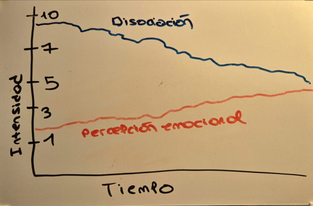 Y esto tiene mucho sentido, porque en el proceso de integración, el objetivo es poco a poco recuperar todos aquellos componentes que la disociación anestesia: sentidos, emociones y procesos cognitivos
