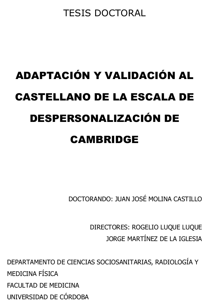 Molina Castillo, J. J. (2008). Adaptación y validación al castellano de la Escala de Despersonalización de Cambridge [Tesis doctoral, Universidad de Córdoba]. Servicio de Publicaciones de la Universidad de Córdoba.